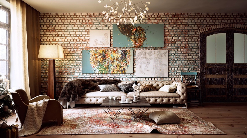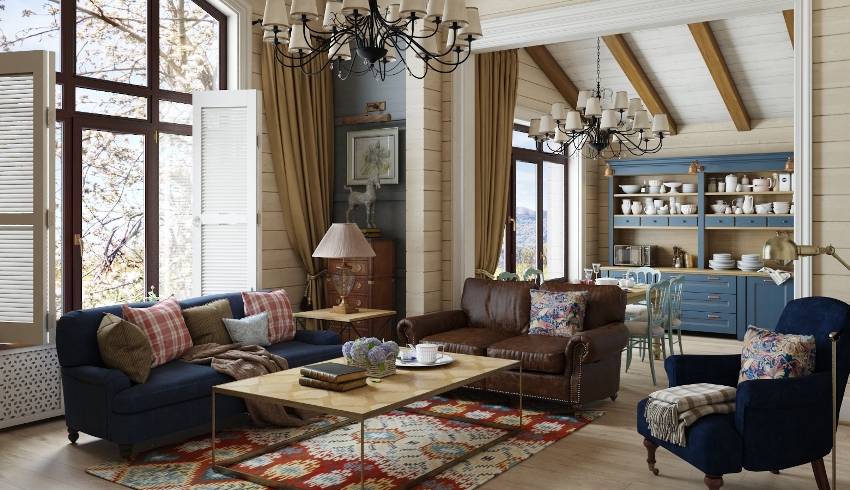 И в первую очередь, на чём следует акцентировать внимание, это приближённость к природе, что означает актуальность на всё естественное, начиная от расцветки, заканчивая наличием грубых столов, стульев и других предметов мебели из дерева и прочих натуральных материалов