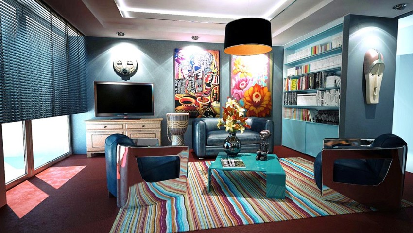 - Арт-деко – направление, сочетающее эстетику, минимализм и яркие, креативные предметы декора. Часто прослеживаются этнические мотивы.