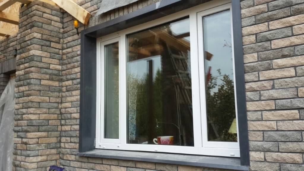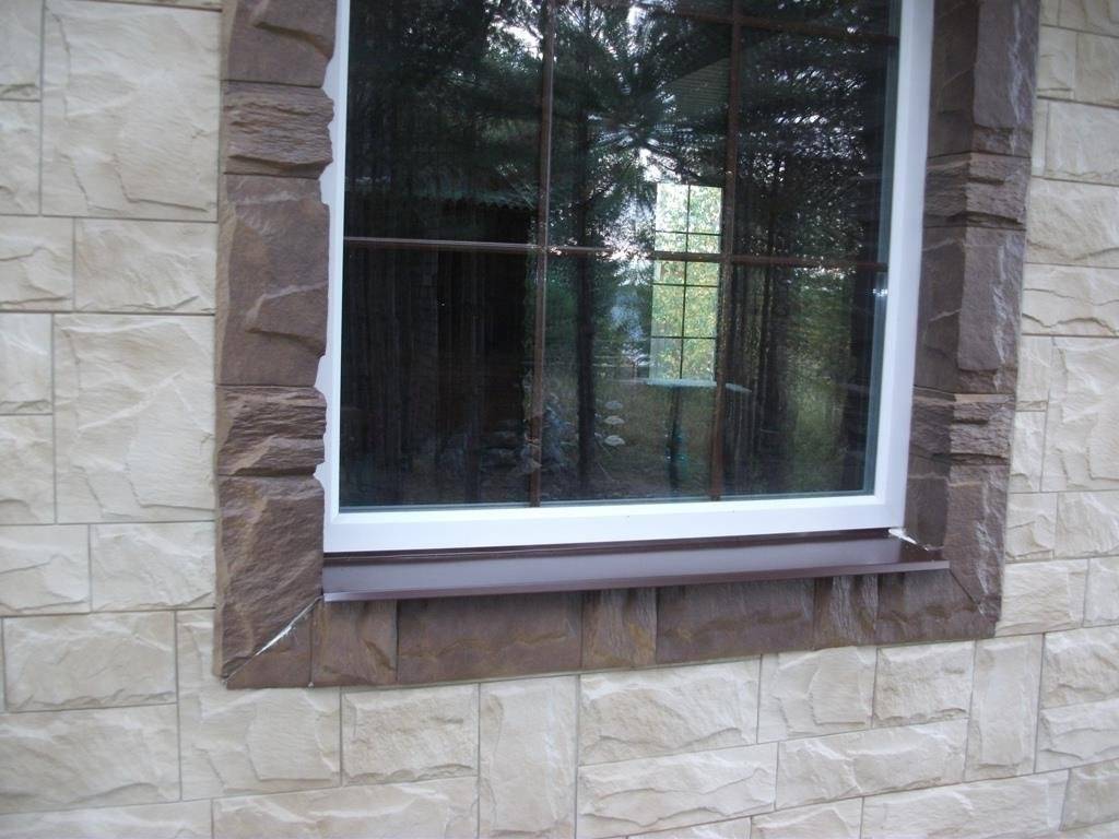 Отделка оконных проемов снаружи камнем потребует больших денежных вложений, но это компенсируется долговечностью и благородным внешним видом готовой конструкции. Поскольку материал довольно тяжелый, он нагружает основание и стены. Перед тем как принять решение о его использовании, нужно убедиться, что фундамент выдержит дополнительную массу.