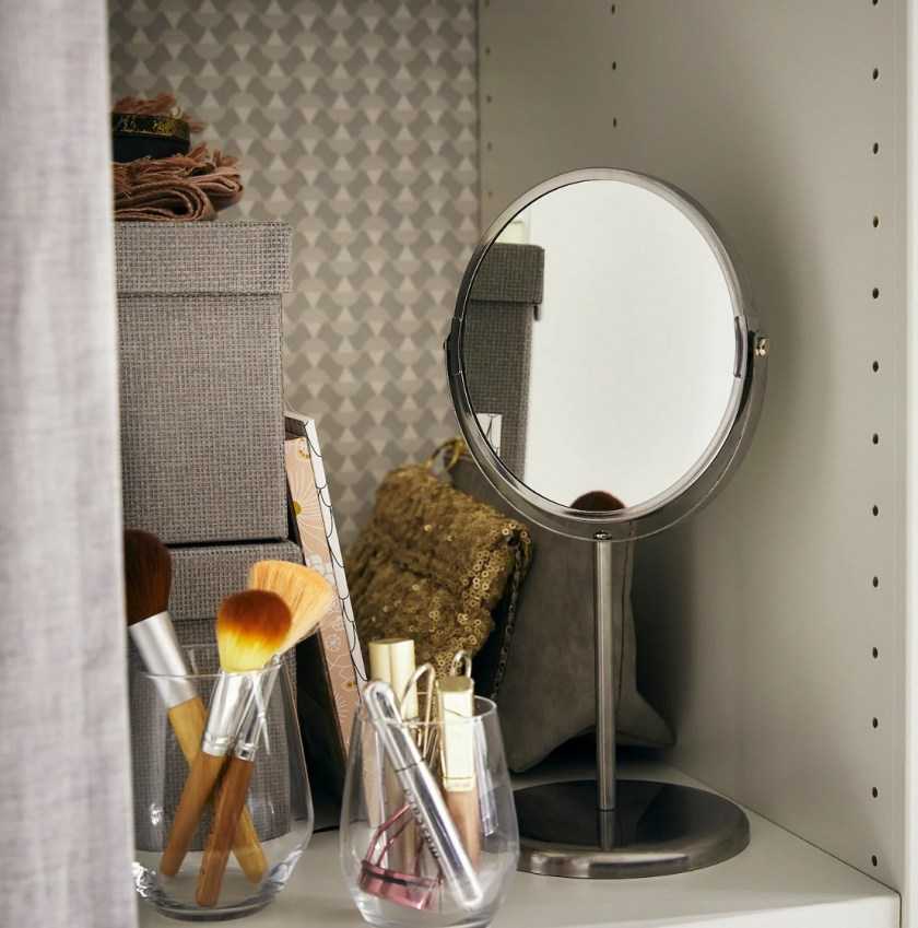 Зеркало ФРЭК славится своим удобным механизмом-гармошкой. Прикрепите к зеркалу любой светильник с помощью зажима, и вы сможете с легкостью регулировать направление и силу освещения.