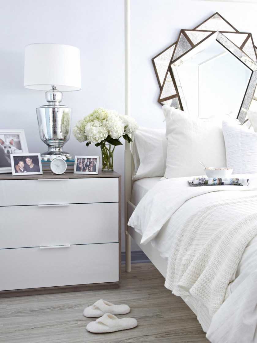Просторным и светлым спальням часто не хватает выразительных деталей, которые могли бы придать оформлению оригинальности. В данном случае хорошим решением станет использование больших часов, украшенных резными деталями или яркими украшениями.