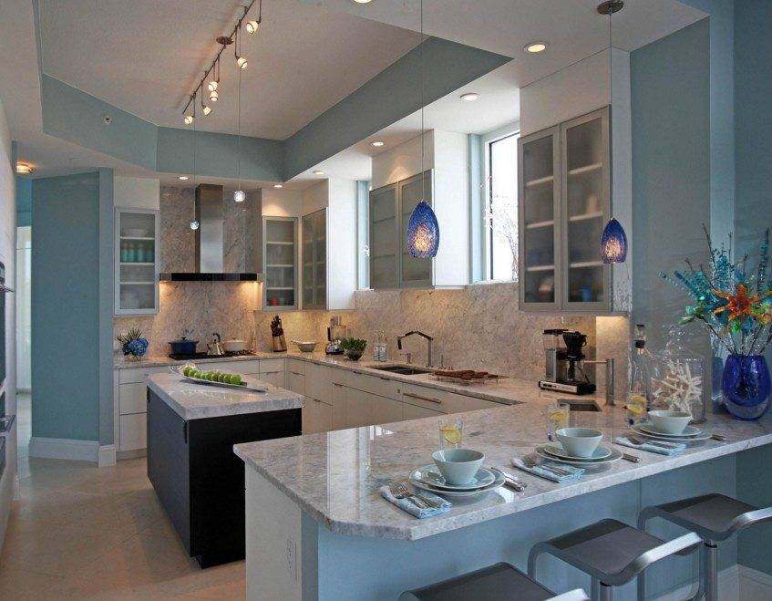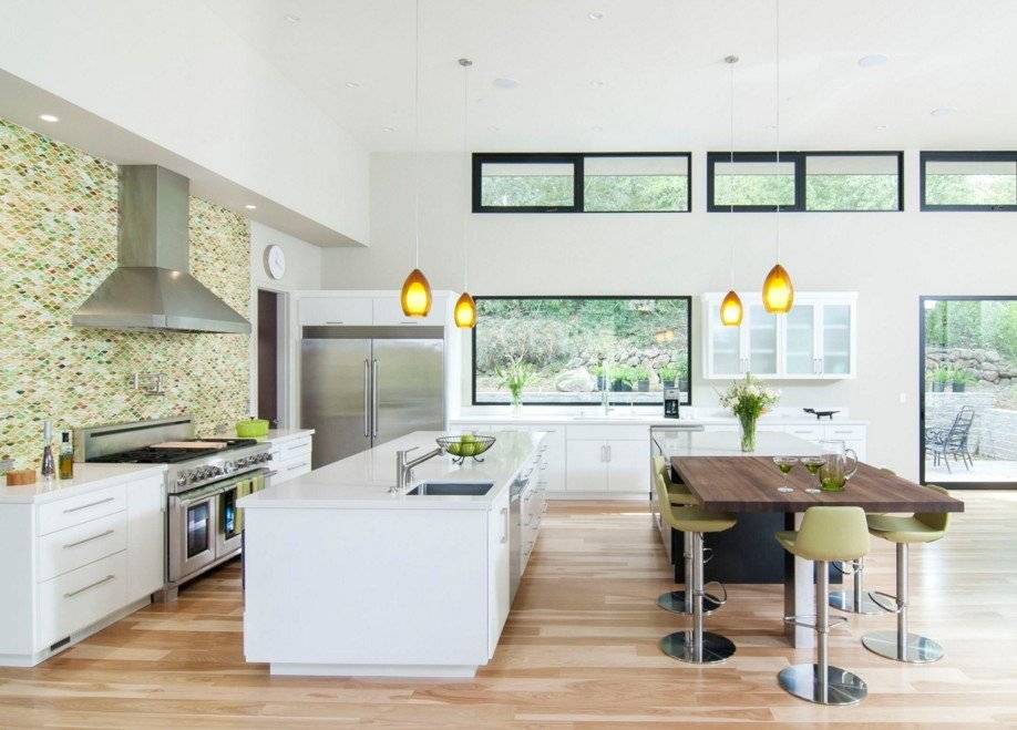 Свет будет расходиться по комнате и не будет создавать отблески и зоны различного освещения. Единственный минус – кухня может смотреться несколько ниже.