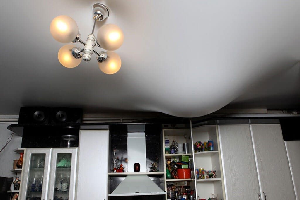 Чаще всего «возможную деформацию» связывают с высокой влажностью на кухне и перепадами температур. Но при обычной бытовой ситуации сложно добиться того, чтобы температура в комнате поднялась до 70–80 градусов, как при установке полотна, поэтому потолку ничего не грозит. Нельзя такое сказать про глянцевую пленку и холод — на морозе она может потрескаться, поэтому лучше избегать неотапливаемых помещений.