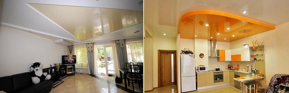 Здесь можно комбинировать несколько цветов, формируя достаточно интересные с точки зрения дизайна переходы. При этом двухуровневые конструкции будут не уступать в надежности обычным одноуровневым.