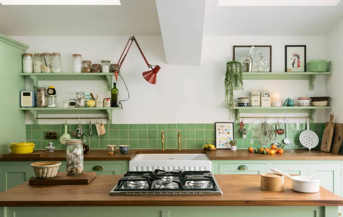 При желании над плитой можно установить полку для кулинарной книги. Правда, скорее для антуража — вряд ли книга выдержит постоянное воздействие горячего пара и брызги жира.