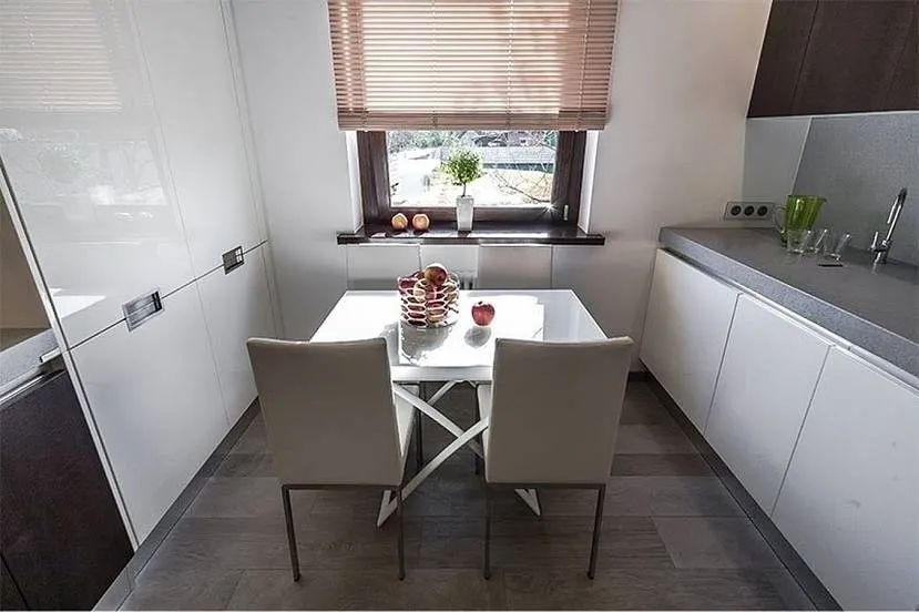 В некоторых современных кухнях есть выход на балкон. Расширив кухню за счет лоджии или балкона, получаем дополнительную площадь, где можно оборудовать обеденную зону.