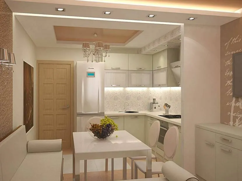 Если стена не несущая, то в ряде случаев такую перегородку допустимо частично или полностью снести. Так обычно при капительном ремонте квартиры расширяют кухню путем ее объединения с рядом расположенной гостиной. В результате выходит уже не 8 метров квадратных, а гораздо больше. И тогда к дизайну объединенного помещения получается подойти с совершенно иных позиций без каких-либо ограничений.