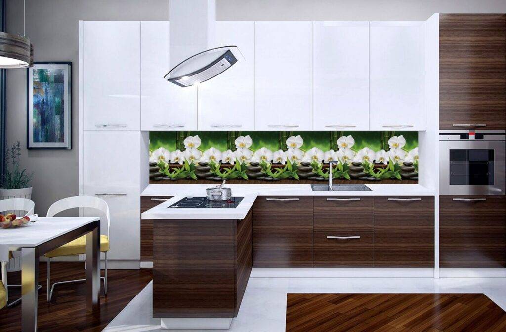 Отдельного внимания заслуживает пластиковая кухня с рисунком. Пластиковые фасады с нанесенным изображением смотрятся очень изысканно, но такой вариант не для маленького помещения, так как рисунок будет подчеркивать скромные размеры кухни.