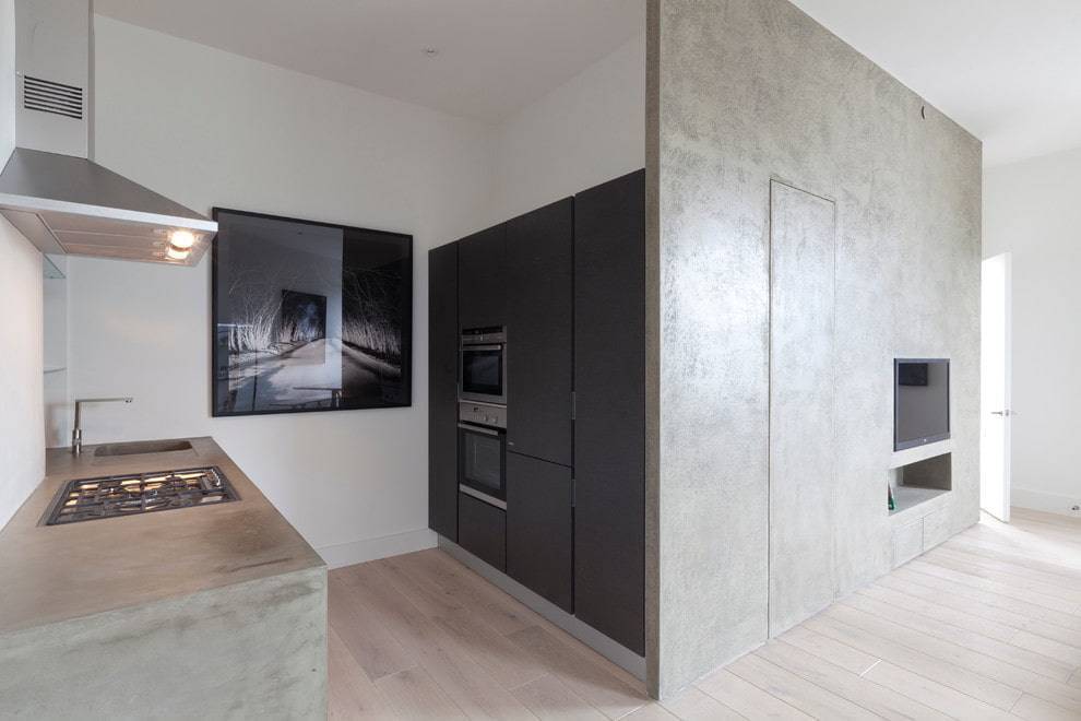 Если углубление в стене глубокое, то «горячая» зона готовки — плита и рабочие поверхности — полностью определяются в такое углубление.