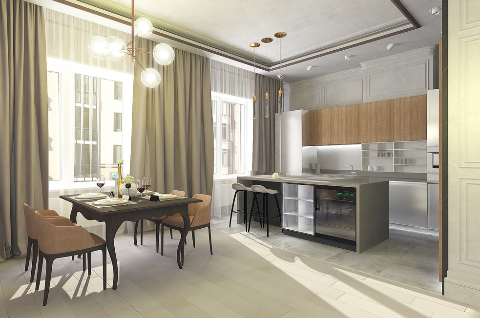 Чтобы кухня-гостиная была удобной и радовала глаз, нужно постараться продумать каждую деталь и только потом приступать к перепланировке