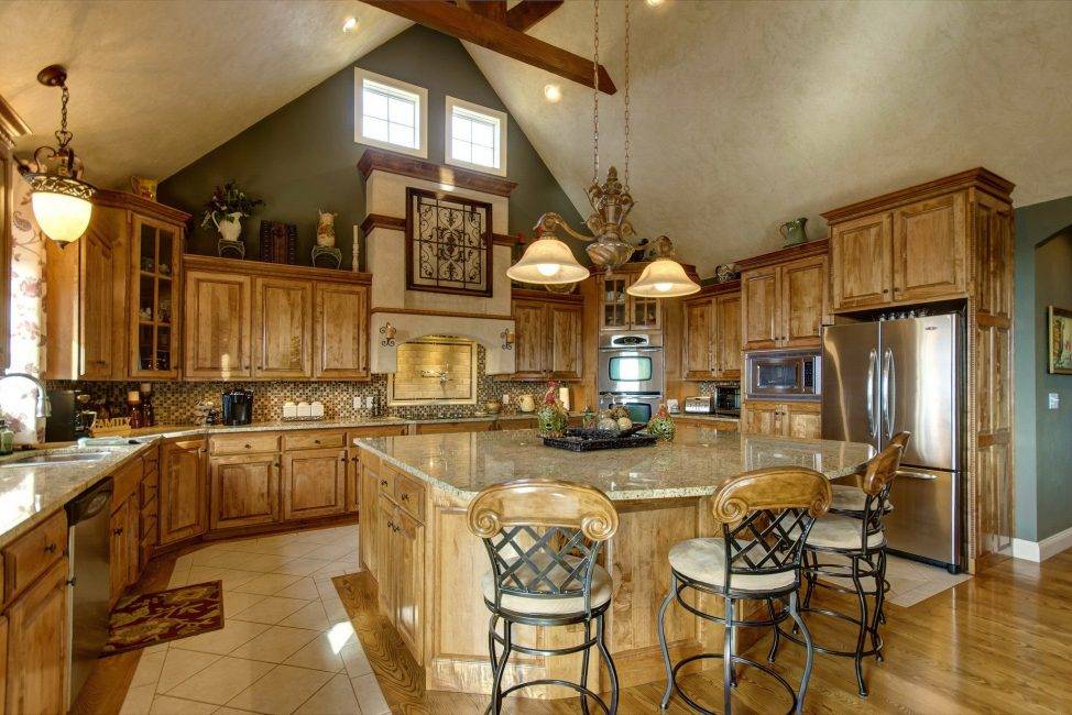 Не оказываясь перед проблемой ограниченной площади, можно позволить себе обставить кухню с широтой, и использованием декоративных элементов.