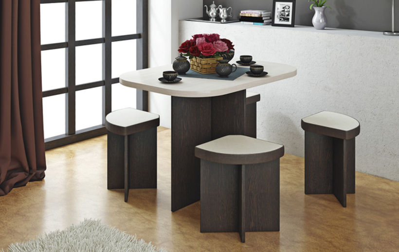 Табуреты. Табуреты будут спасением, если кухня совсем крошечная, они обычно меньше стульев и легко убираются под стол не мешая готовить еду и перемещаться по кухне.