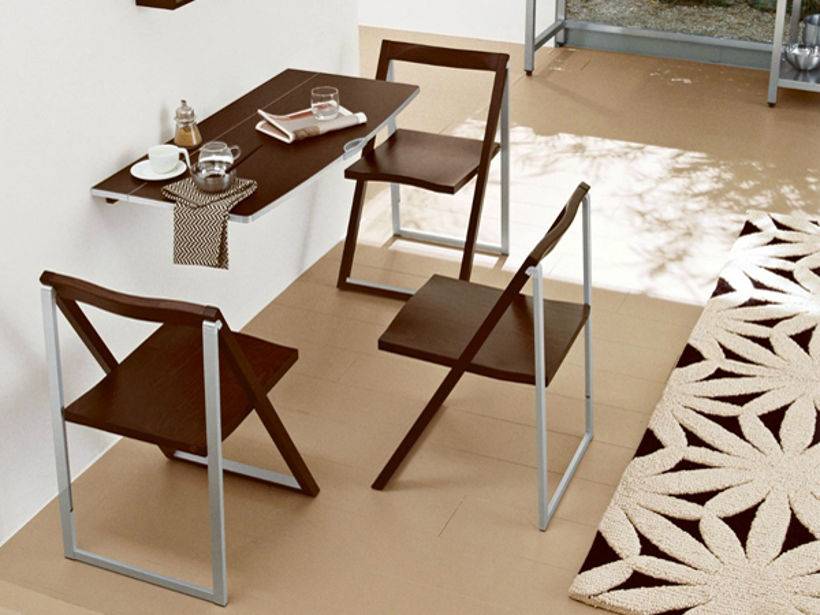 В принципе выбор с позиции логики может быть лишь один – учитывая небольшую площадь помещения, для него, соответственно, необходимо выбирать маленький стол. Однако даже в этой категории кухонных столов модели могут отличаться. Как же быть?