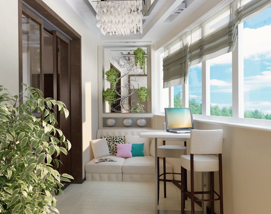 В этом случае на балкон выносят диваны и кресла. Нужно учитывать их вес и правильно рассчитывать габариты. Вероятнее всего придется делать мягкую мебель на заказ, так как балконы и лоджии не всегда имеют прямоугольную форму.