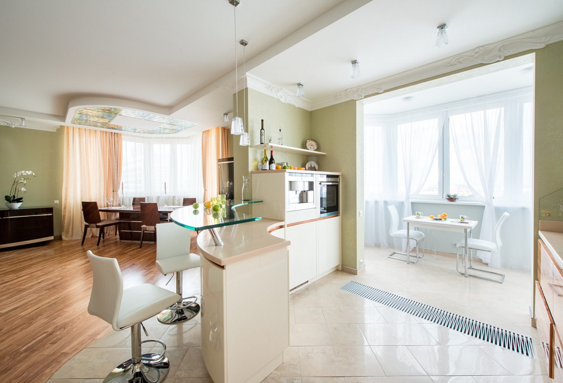 Дизайн кухни, совмещенной с балконом: за и против