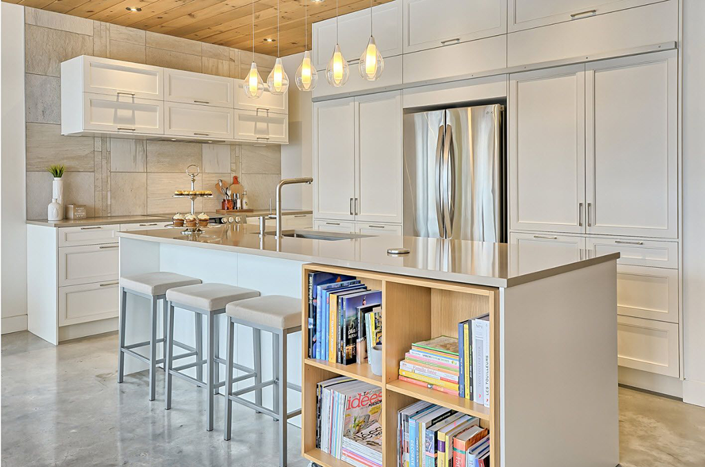 Это далеко не все варианты, как можно использовать пространство острова. Так, не стоит ограничиваться только его верхней частью, ведь много предметов можно разместить и под его поверхностью. К примеру, внизу столешницы можно расположить небольшую морозильную камеру, посудомоечную машину и отделения для хранения посуды.