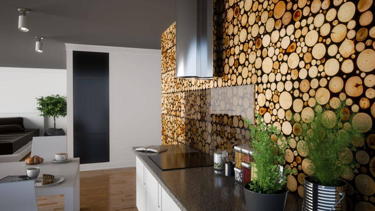 Обои с 3D принтами и фотообои могут как придать кухне просто потрясающий внешний вид