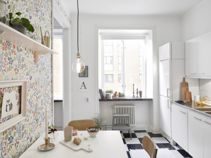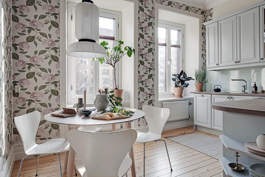 Еще вариант обоев в цветочек, которые неплохо смотрятся на кухне
