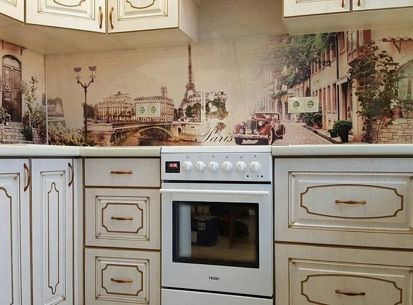Выбрать правильный цвет можно, ориентируясь на выбранный стиль кухни. Для классического интерьера лучше всего подойдут спокойные пастельные, бежевые, светлые гаммы. Красиво будет смотреться ваза с полевыми цветами в виде панно на стене, беседки, увитые плющом, морская пристань с кораблем, луговые пейзажи.