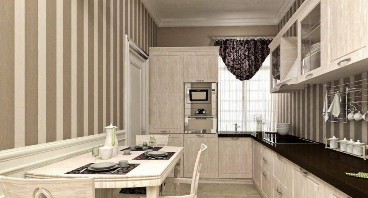 Расширяют кухню, а вместе с тем убирают ее высоту покрытия с горизонтальными полосками или рисунком. Обои с вертикальными полосами визуально делают потолки выше, а саму комнату уже.