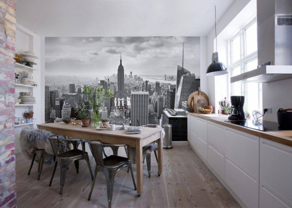 Разработка новых технологий для производства фотообоев позволила выпускать их в водостойком, легко моющемся, не впитывающем запахи варианте, причем с сохранением красоты и яркости изображения, так что их присутствие в интерьере кухни теперь скорее закономерность, нежели исключение.