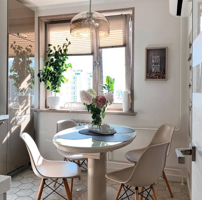 - Все элементы текстиля должны быть также максимально светлыми, чтобы немного сливаться с мебелью, стенами, и в итоге размывать границы маленькой кухни.