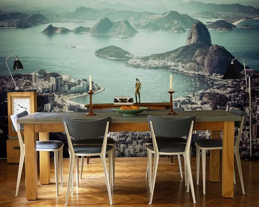 Еще один подходящий вариант — панорамные фотообои с изображением пейзажей