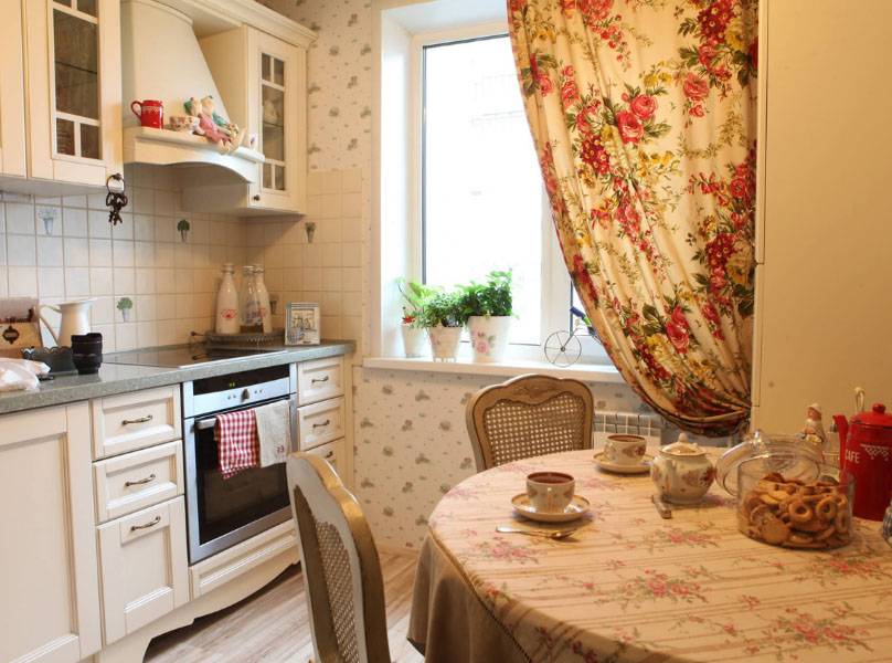 Не перегружайте интерьер лишними деталями, декором. Одни только шторы способны испортить конечный результат. Здесь можно от них отказаться совсем или повесить простые римские или рулонные. Короткие текстильные занавески (тюль, гардины) подойдут для помещения в неколассическом стиле или в стиле прованс. Но и здесь есть свои нюансы выбора.