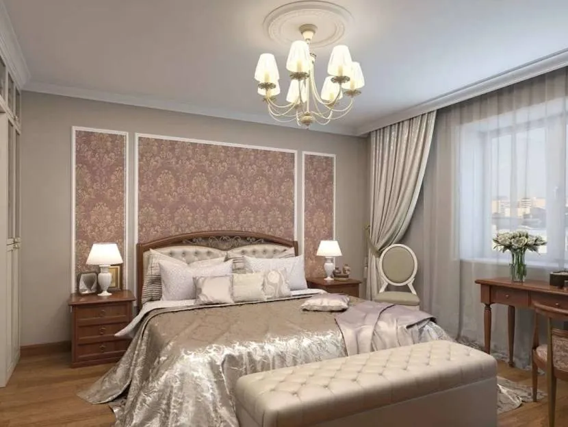 Если от прошлого ремонта осталось один-два рулона шпалер, с их помощью можно креативно оформить потолок. Метод подходит для современных и классических интерьеров. Рекомендуются нейтральные оттенки с неброским узором, находящим отражение в остальном декоре. Если необходимо получить эффект объема, используйте материал с фактурной поверхностью.