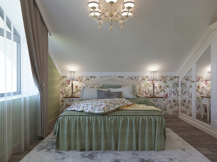 Стены можно оклеить обоями с цветочным рисунком. Одну из стен, например, в изголовье кровати, декорируйте обоями с яркими растительными рисунками, а остальные оформите в пастельных тонах.