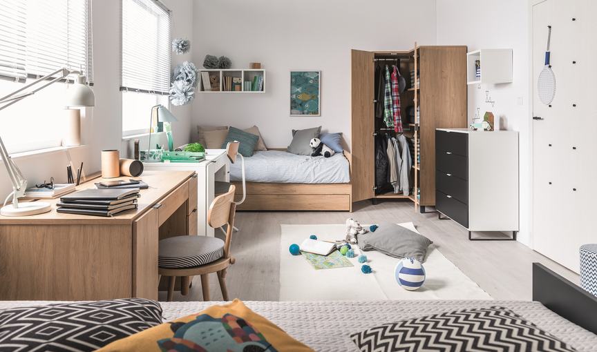 Такое решение отлично подойдет подростку старшего возраста, так как минимализм можно легко поменять и не потребуется капитальная переделка.