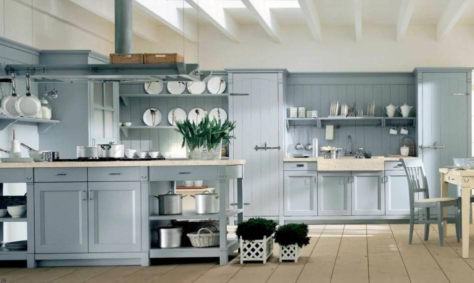 - Для стиля кантри лучше использовать не комнатные цветы, а пряности и зелень, посаженные в старые горшки. Например, хорошо смотрятся базилик и майоран, особенно если их подстригать.