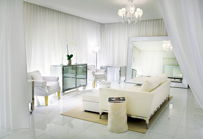 Шторы белого цвета смотрятся очень стильно. Они создают строгий, благородный и возвышенный дизайн.