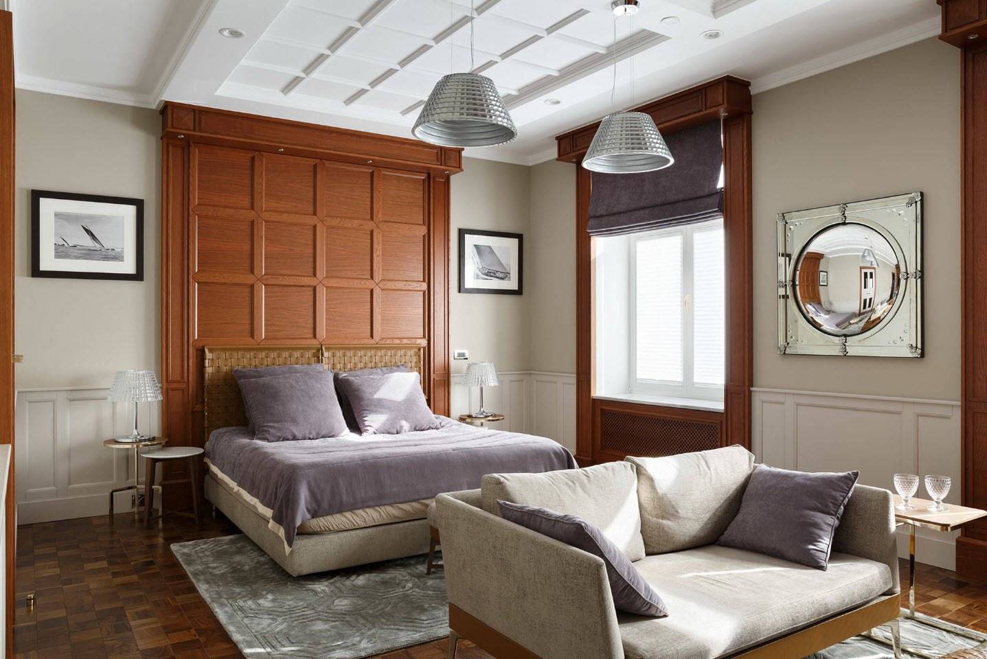Допустимо использовать для оформления откосов плитку, однако важно помнить, что однотонный вариант может удешевить интерьер, а яркий вариант впишется не в каждую спальню. Смелым и оригинальным подходом станет использование зеркал, помогающих сделать спальню более светлой и просторной