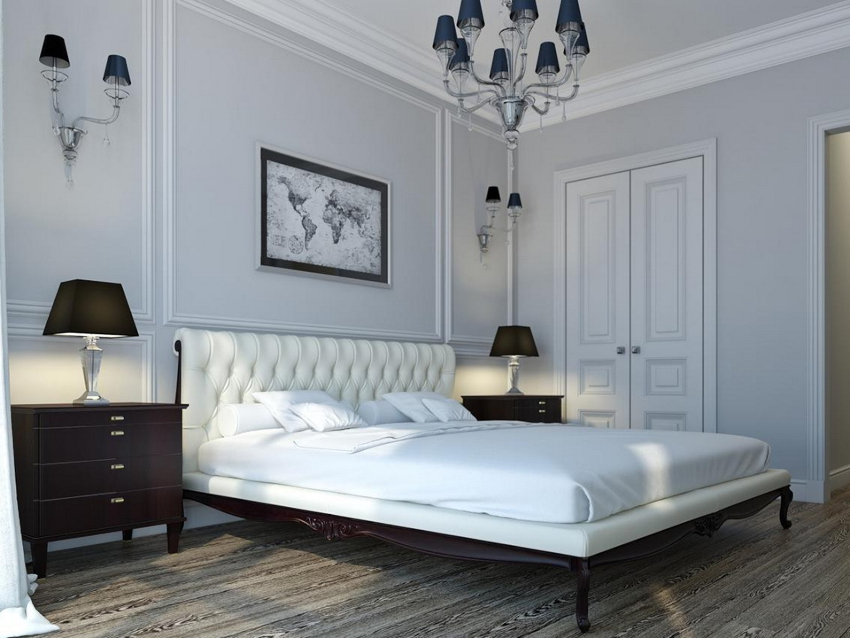 Аристократический стиль, не приемлющий современных материалов. Оттенки должны быть мягкими, пастельными, простыми. Строгая симметрия, плавность, без резких переходов. На потолке приветствуется штукатурка, лепнина и роскошные светильники.