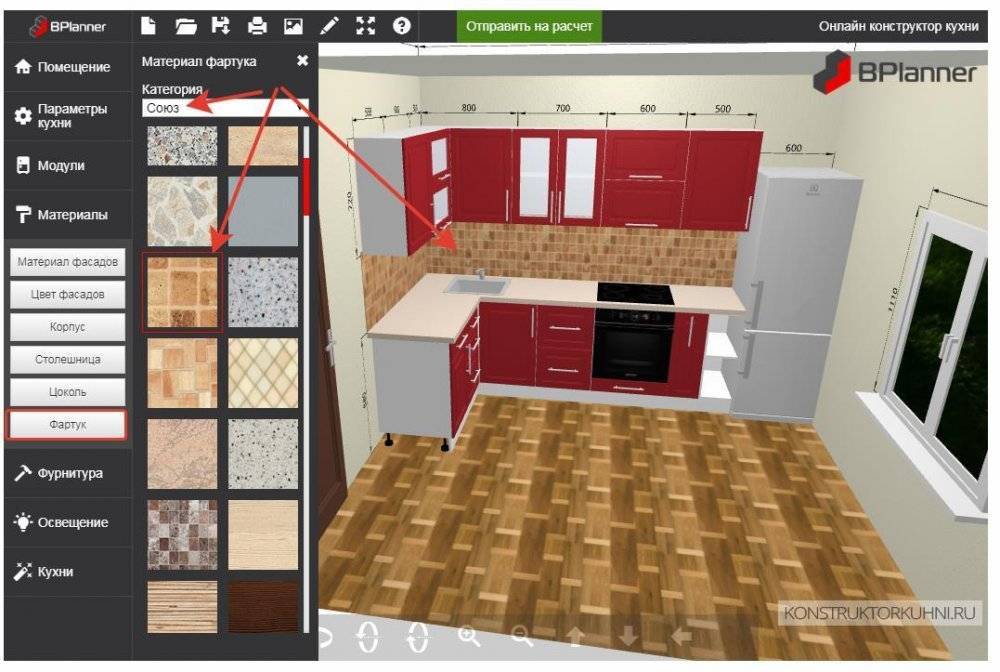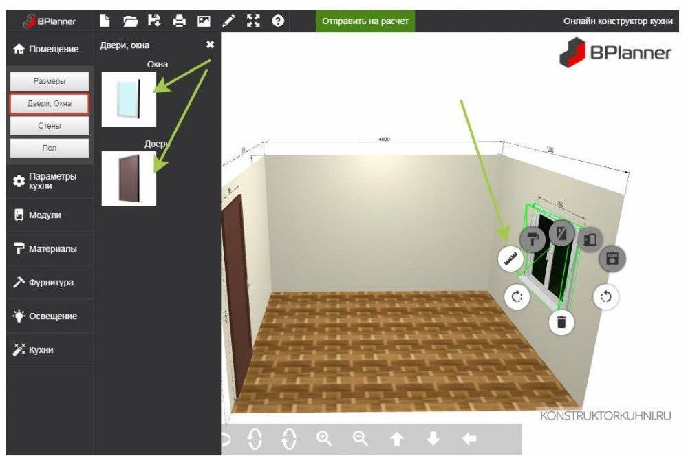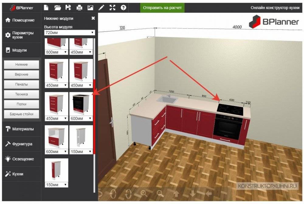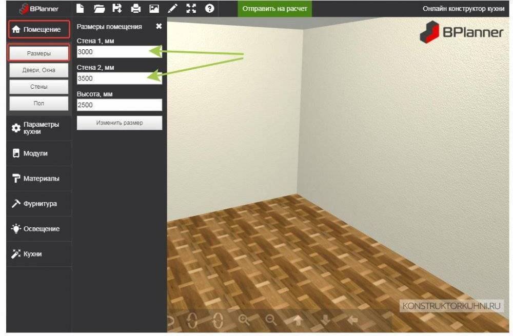 Сервисы, для того чтобы смоделировать кухню по размерам в компьютере работают так: