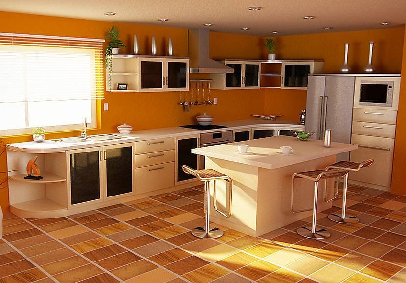 Применение оранжевых оттенков при обустройстве кухни маленьких размеров