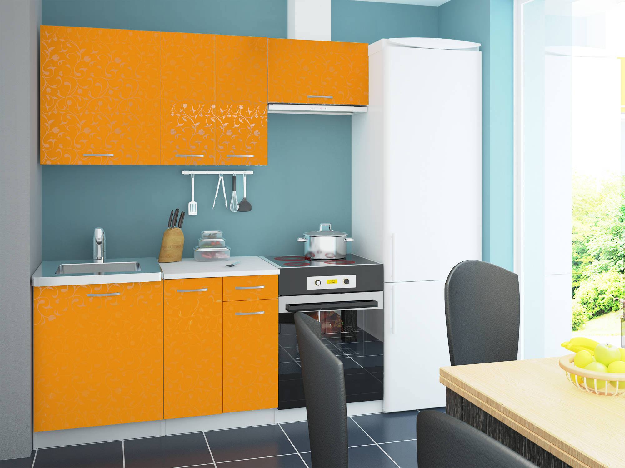 Оформление кухни с гарнитуром оранжевого цвета