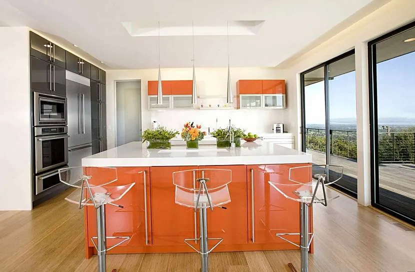 Оранжевая кухня создаст теплое и отличное настроение для всей семьи