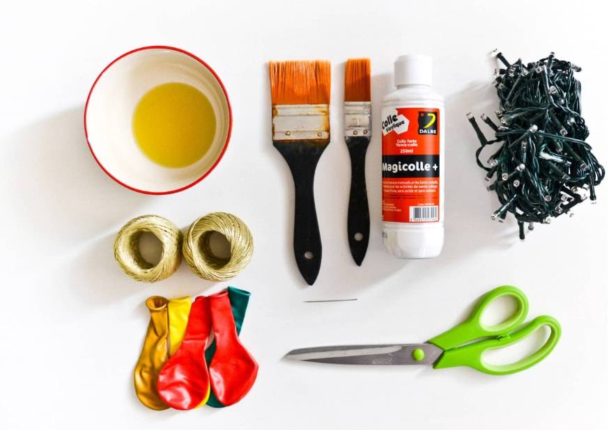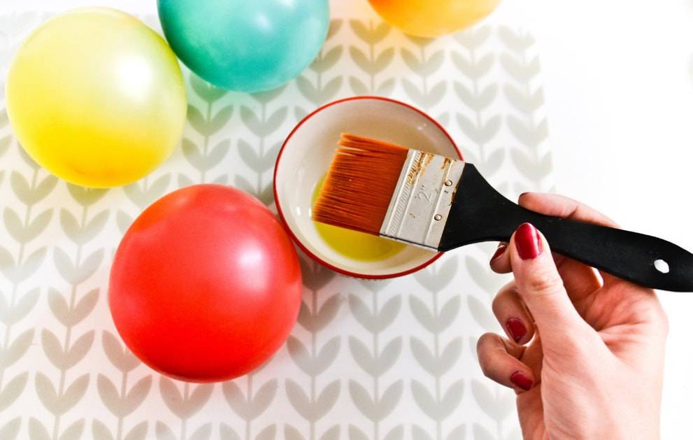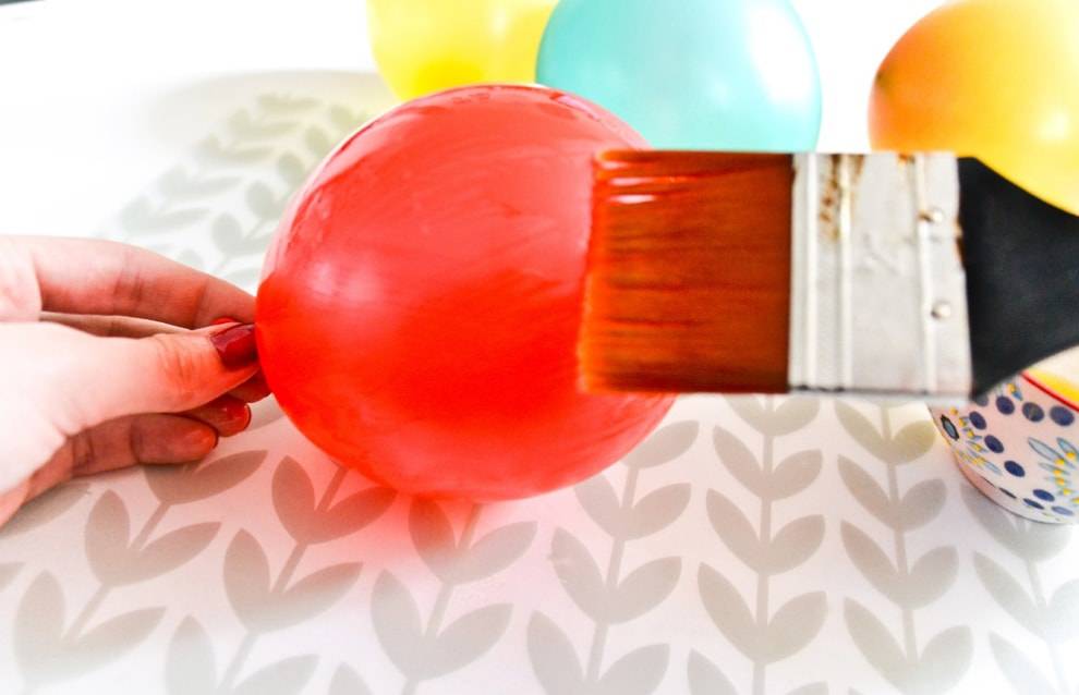 Вам понадобятся: листья, клей, кисточка и воздушный шарик.