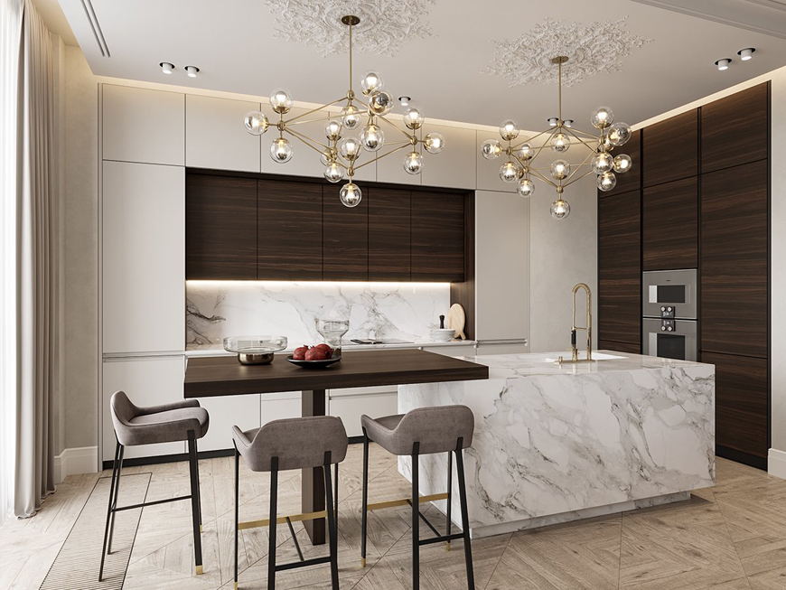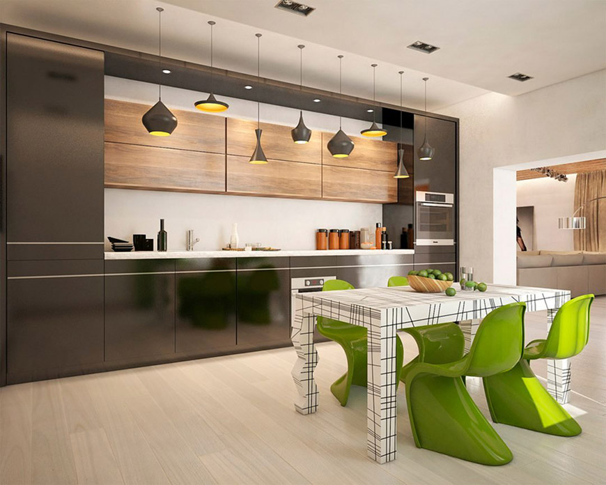 Светильники – еще один важный момент. Вы должны убедиться, что выбранные вами светильники стильные и дополняют общий дизайн вашей кухни. Вам также необходимо убедиться, что их легко чистить и что они не будут легко ломаться.