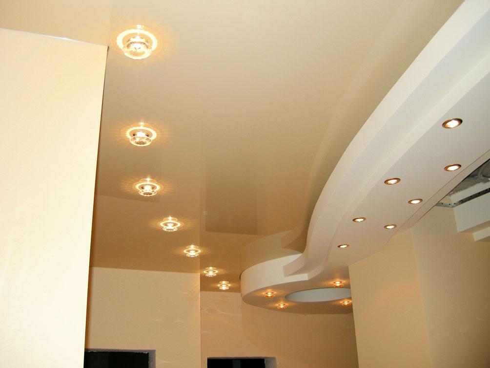 Для натяжных покрытий есть ряд ограничений на установку того или иного типа осветителей. Для гипсокартона они практически отсутствуют, а для окрашенных потолков можно выбрать любые типы осветительных приборов.