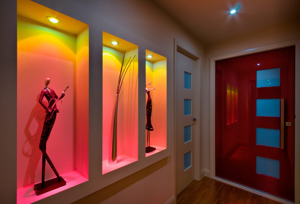 - Применяйте декоративную подсветку, она расширит границы помещения;