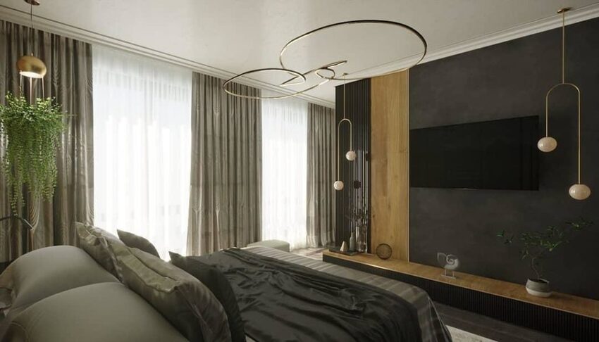 - Обязательно рассчитывают будущее расположение светильников в спальне.