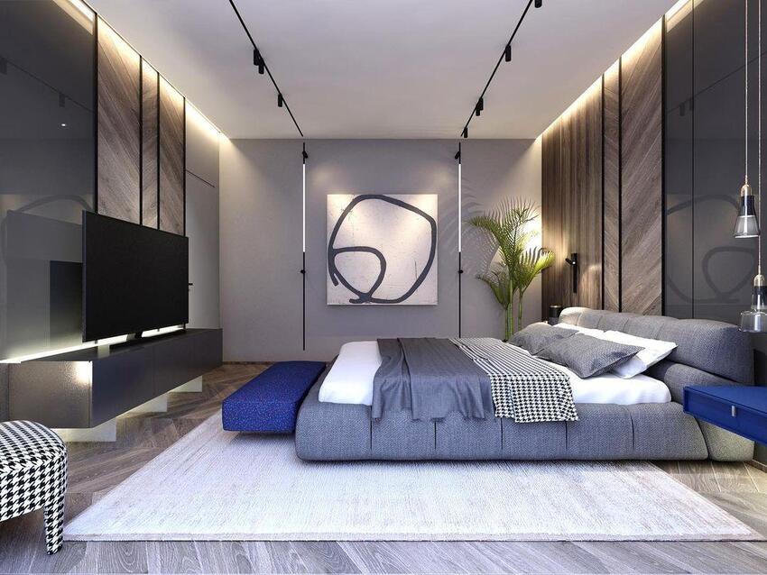 Если в спальне предполагается хранение вещей (в гардеробной или шкафу-купе), стоит подумать над освещением этих зон. Оно сохранит время и нервы, если в комнате живут двое и встают в разное время суток.