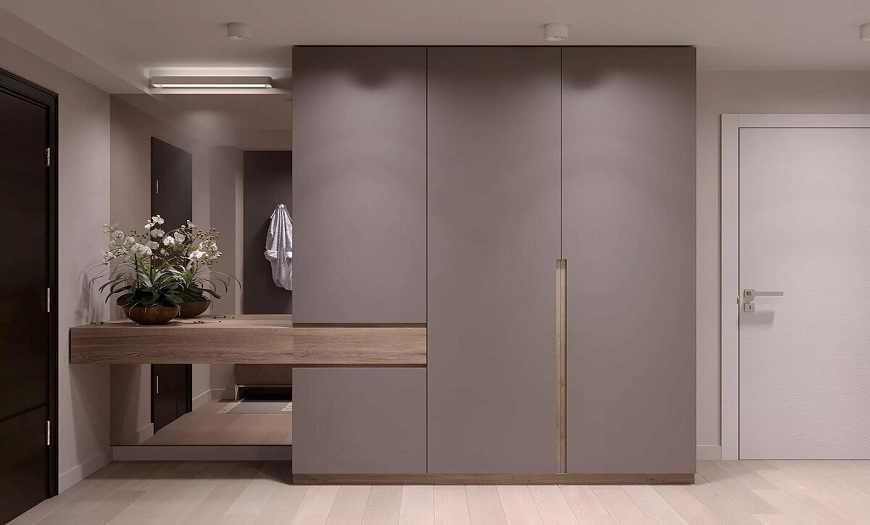 Дополнительная информация: Если коридор в квартире слишком узкий, то в дизайн проекте шкаф лучше заменить на напольную или настенную вешалку.