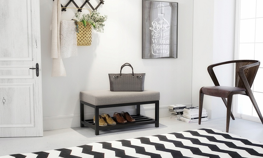 - Угол у входной двери: пуфик с откидной крышкой-сидением, на стене — ключница.