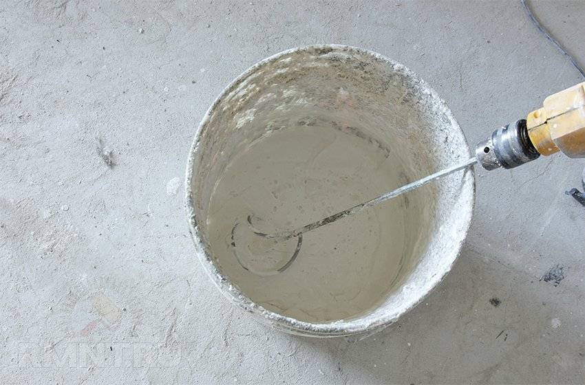 - В получившийся водно-клеевой раствор засыпают сухую смесь, перемешивая ее строительным миксером.
