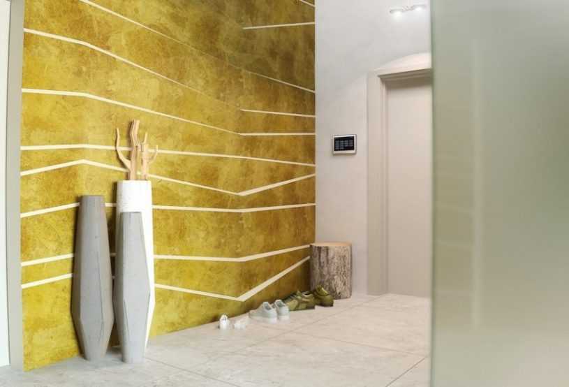 Если камень будет покрывать стены прихожей всплошную, старое покрытие снимают полностью до основания. Если для декора предназначены отдельные участки, демонтировать покрытие нужно очень аккуратно