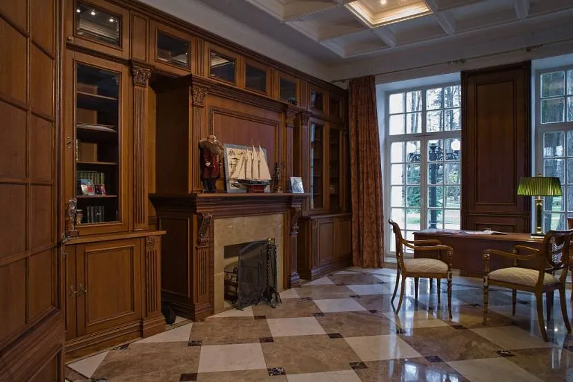 Зачастую деревом обшивали только нижнюю часть стены, чтобы защитить её от механических повреждений, которые могла нанести мебель.